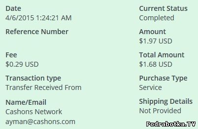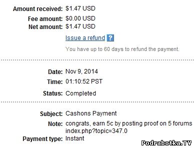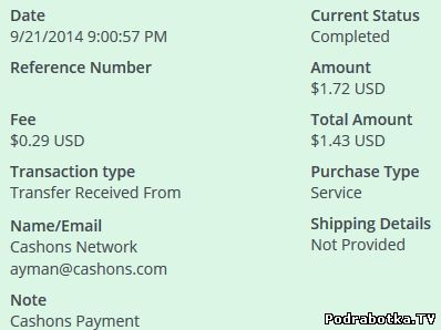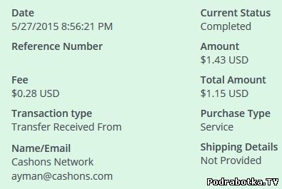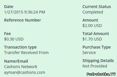 Выплаты с Cashons.com