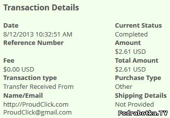 Date: August 31, 2013 10:47:44 AM Amount Sent: $1.00 USD Sender Name: http://ProudClick.com Sender Email: ProudClick@gmail.com Reference Number: ХХХХ-ХХХХ-ХХХХ Message: