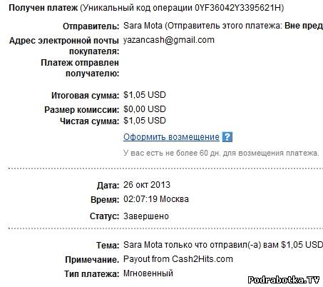 Выплаты с Cash2hits.com