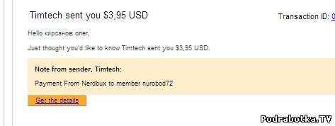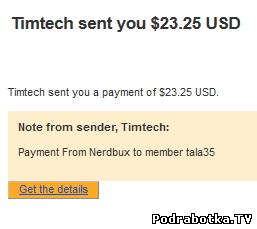 | Здравствуйте! Выплата с Nerdbux.com сегодня получена на Pay Pal. Мой логин PW13627