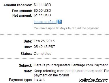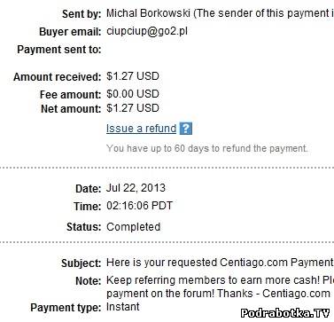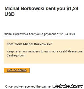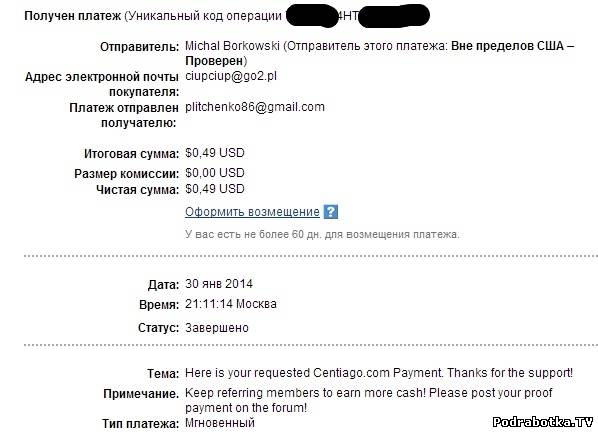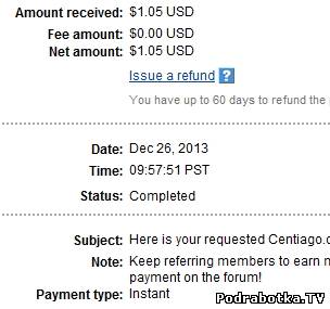 Выплаты с Centiago.com