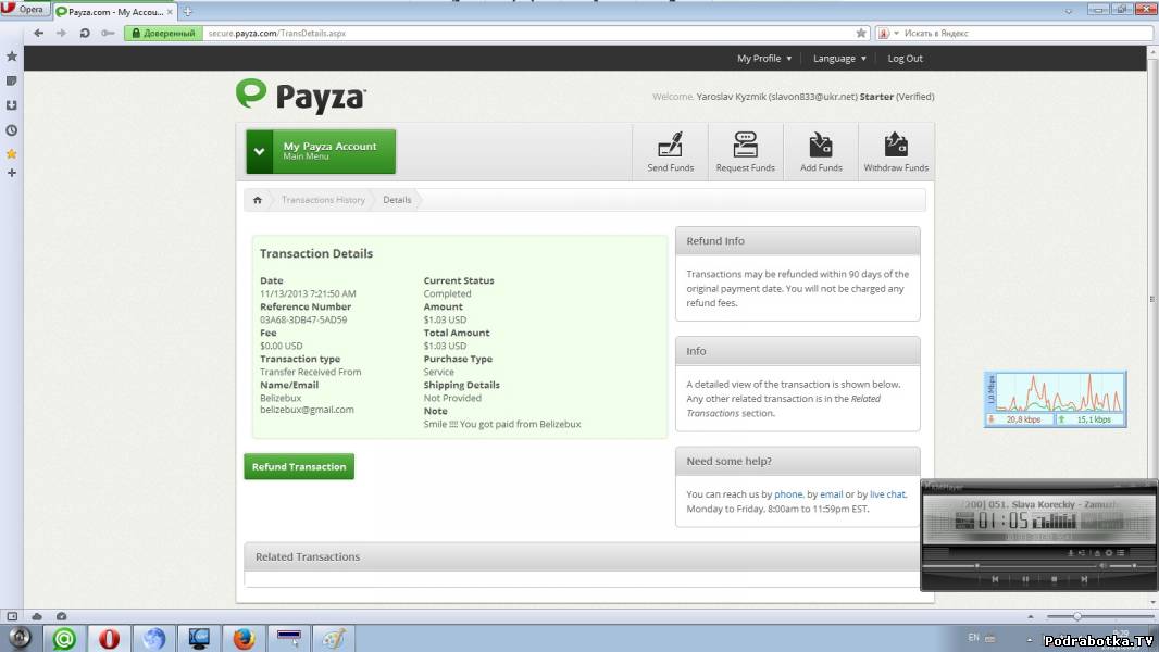 View the details of this transaction by logging into your Payza account.