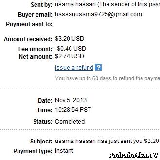 Скриншоты полученных выплат