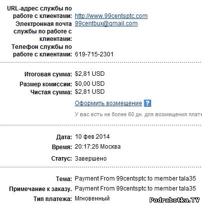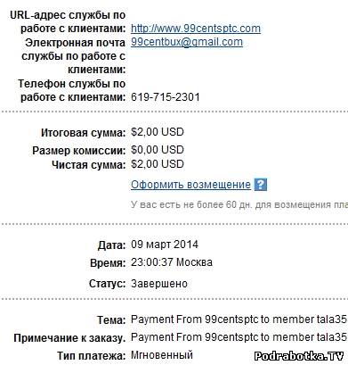 Выплаты с 99centsptc.com