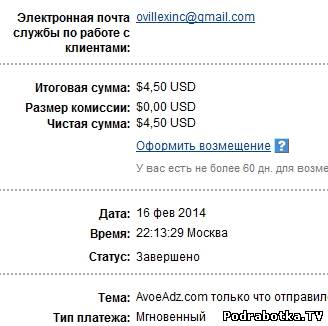 Выплаты с Avoeadz.com