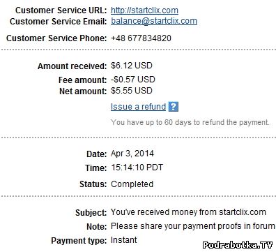 Выплаты с Startclix.com