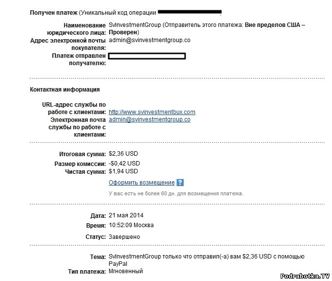 Выплаты с svinvestmentbux.com