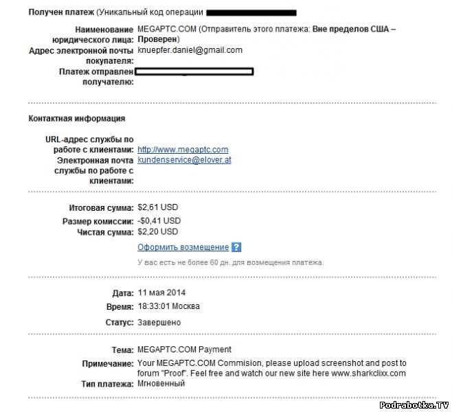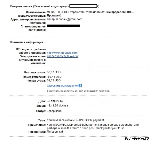 Выплаты с megaptc.com