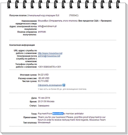 Выплаты с Mousebux.net