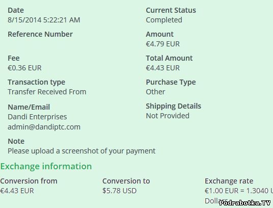 Выплаты с Dandiptc.com