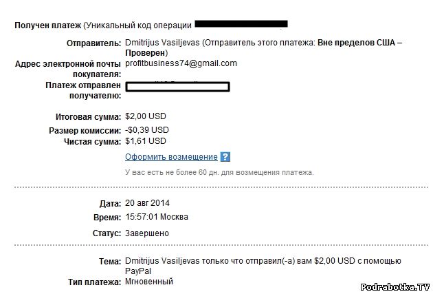 Скриншоты полученных выплат