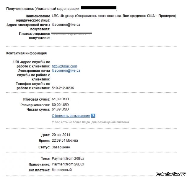 Выплаты c 26bux.com