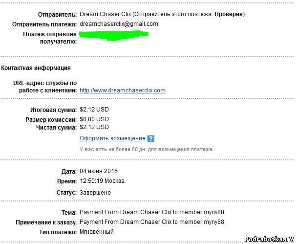 Выплаты с Dreamchaserclix.com