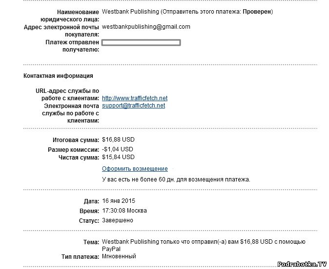 Выплаты с trafficfetch.net