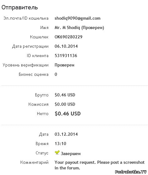 | Первая выплата с проекта (мгновенная!):