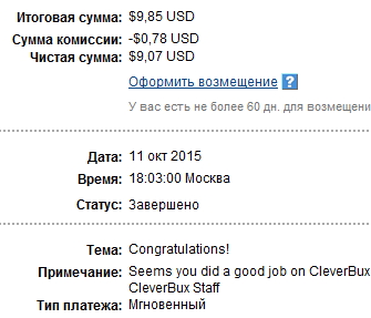 | 2-ая выплата с проекта (время ожидания - 3 дня):