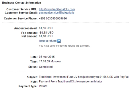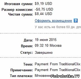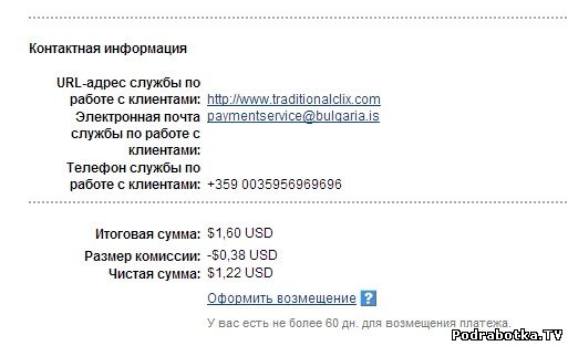 Выплаты с Traditionalclix.com