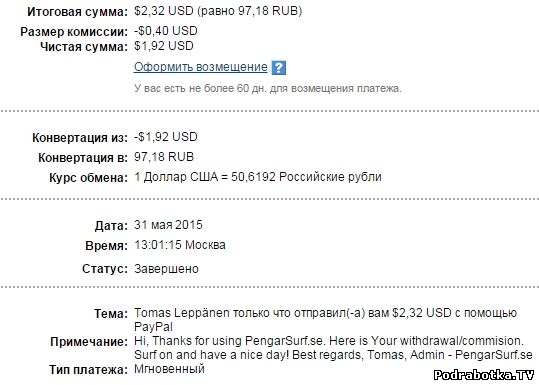 Выплаты с Pengarsurf.se