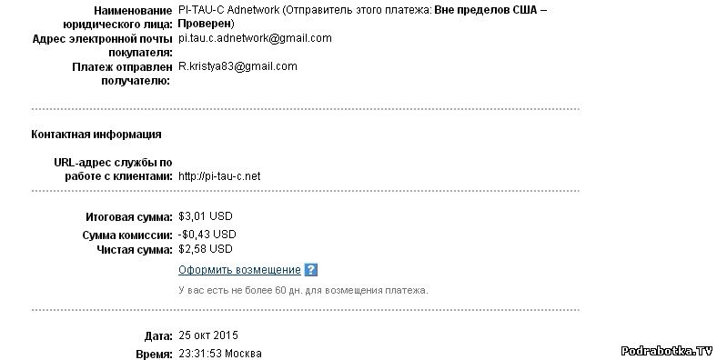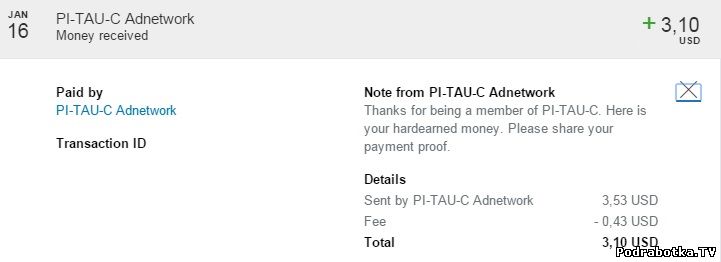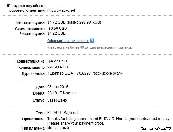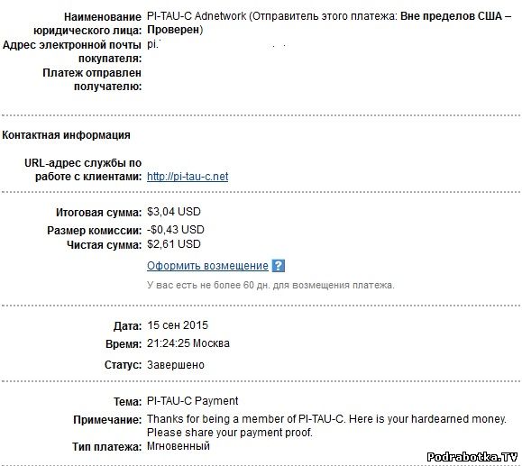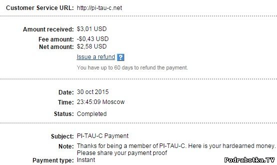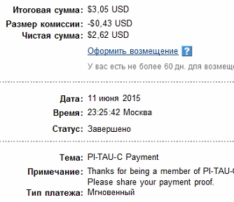 Выплаты с Pi-tau-c.net