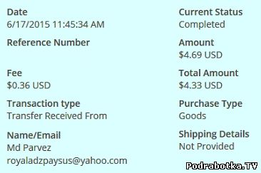 Скриншоты полученных выплат