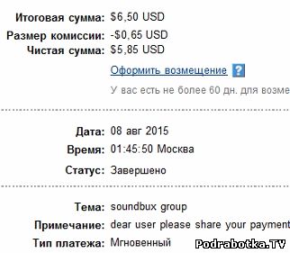 Выплаты с Soundbux.com