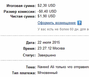 Скриншоты полученных выплат