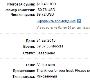 | 1-ая выплата с проекта (время ожидания - 2 дня):