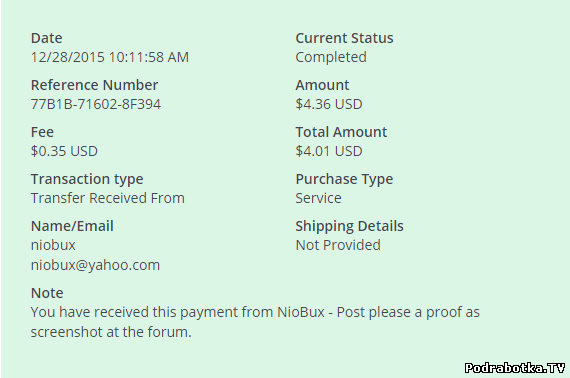 Выплаты с Niobux