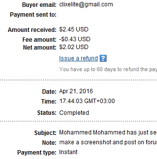 Скриншоты полученных выплат