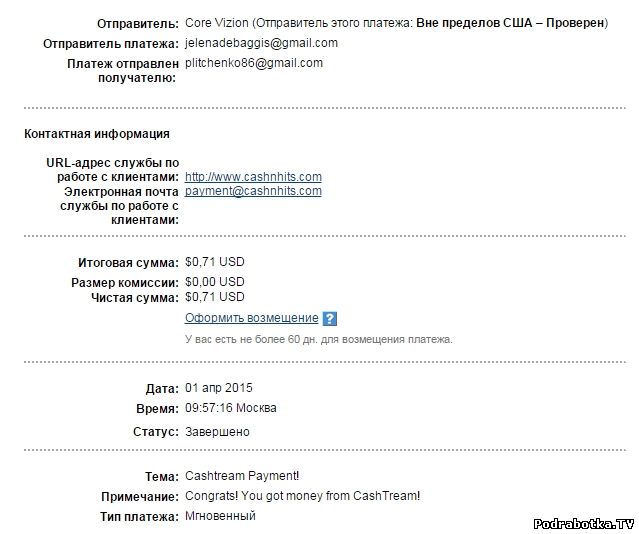 Выплаты с Cashtream.com